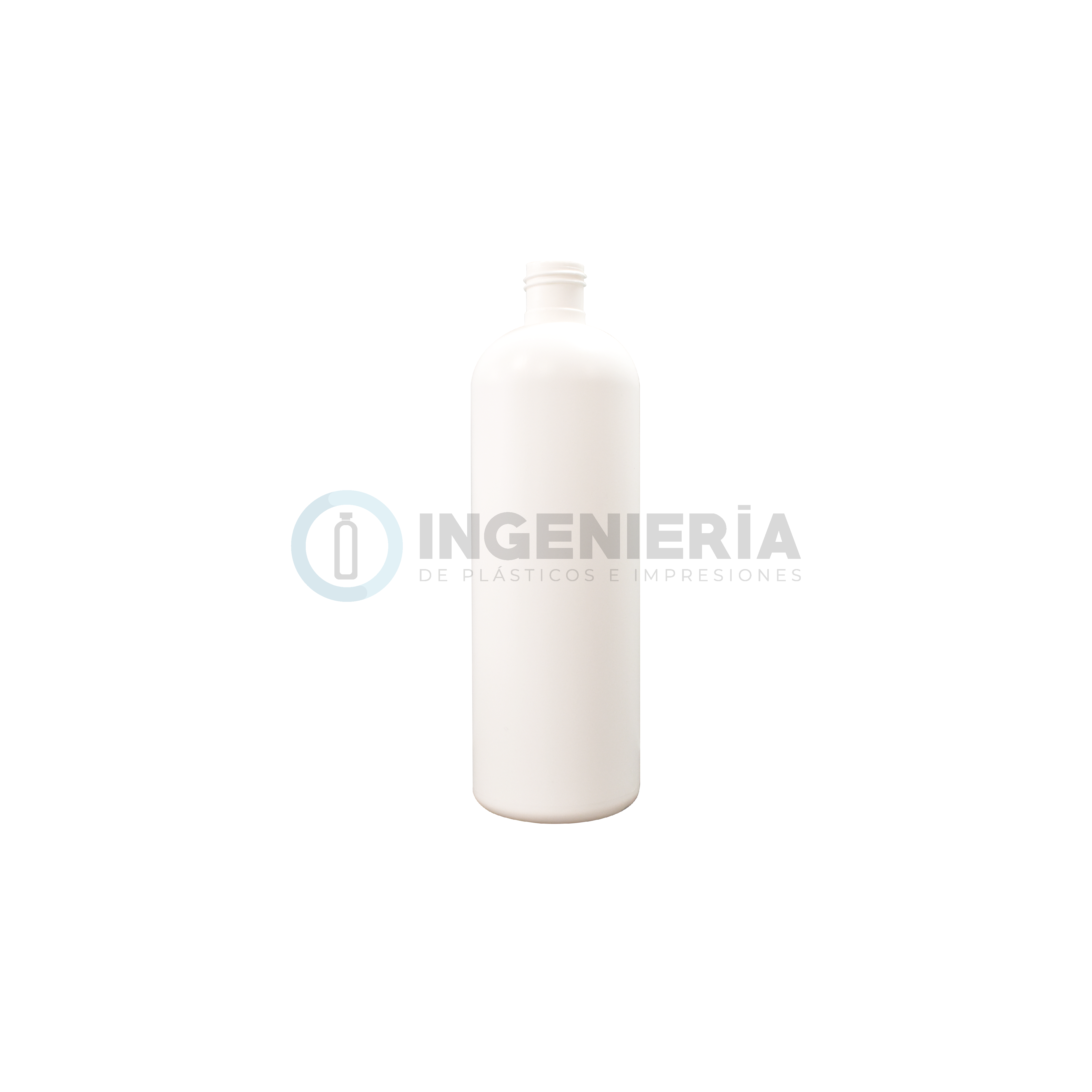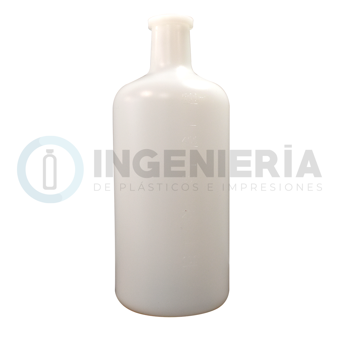 - Frasco elaborado con polietileno de alta densidad y pigmento blanco.